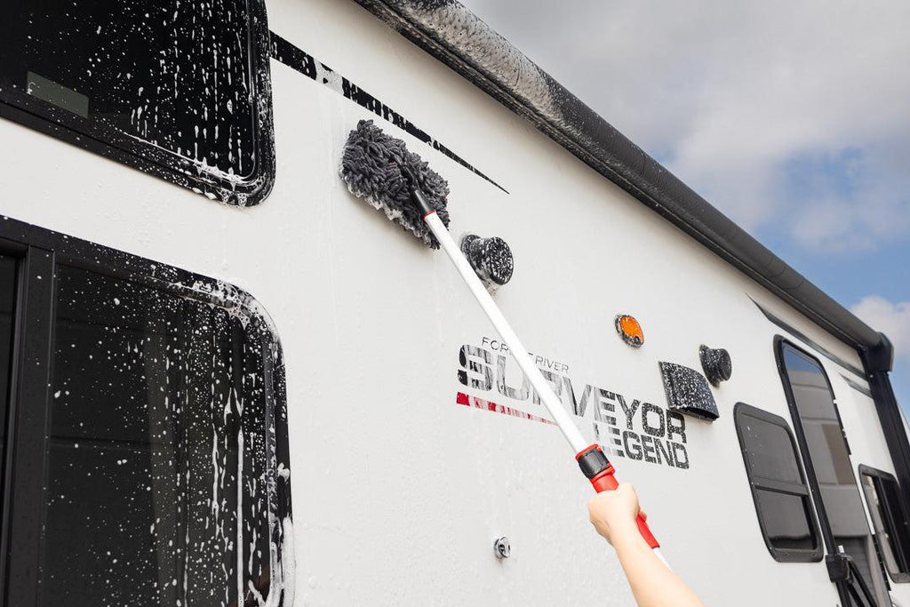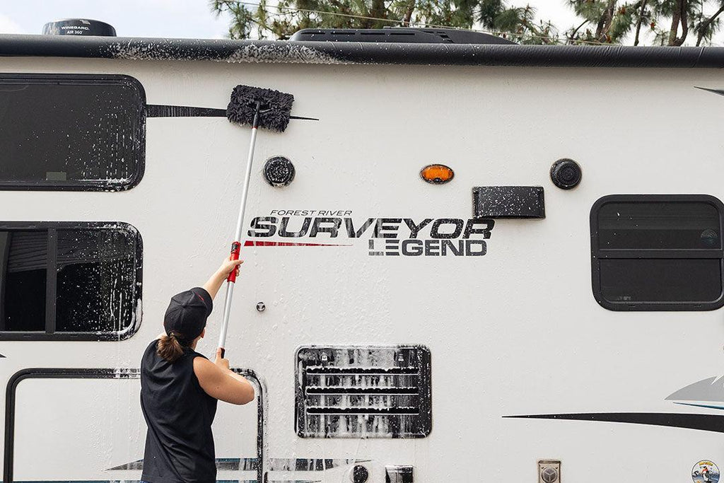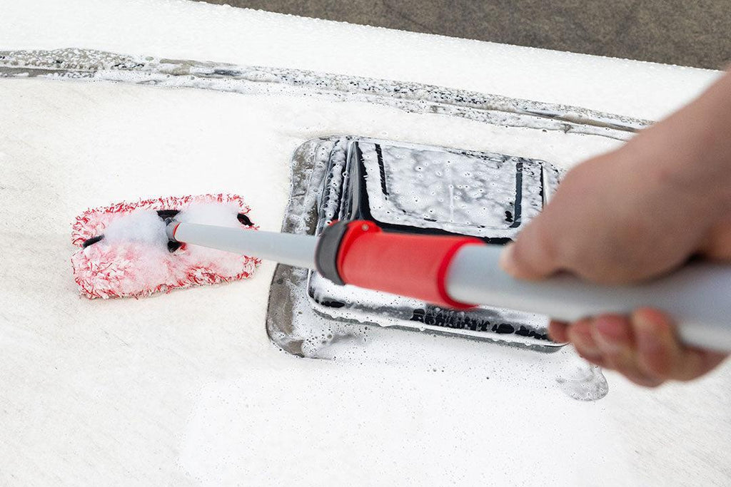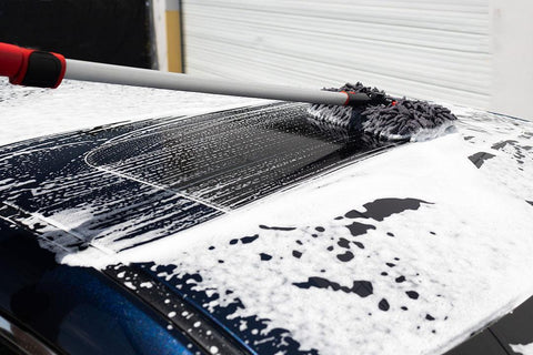 Our premium car wash tool, the IncrediStick, it a telescopic car wash brush that conquers unreachable grime with ease. This premium aluminum pole extends to 47.24in, tackling rooftops, truck beds, and more. Two removable brush covers, microfiber and chenille, handle delicate surfaces and tough dirt, while fitting perfectly into standard buckets for soapy dunks. Disassembles for compact storage, making the IncrediStick your car-cleaning superhero!